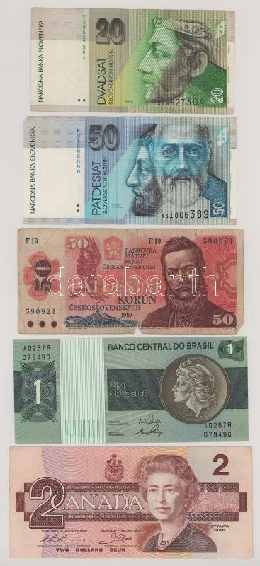 Vegyes, 9db-os bankjegytétel, benne: Kanada, Csehszlovákia, Ausztria, Olaszország, Szlovákia, Német Demokratikus Köztársaság, Brazília T:vegyes