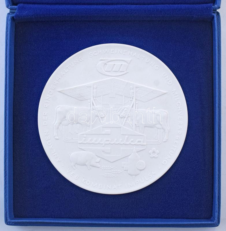 Német Demokratikus Köztársaság 1970 k. "Impulca" kétoldalas meisseni porcelán emlékérem eredeti tokban (146mm) T:UNC