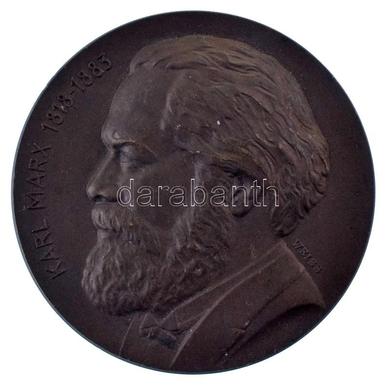 1968. "Karl Marx 1818-1883 / zum 150 geburtstag 1968" (Karl Marx születésének 150. évfordulójára) kétoldalas bronz emlékérem Szign.: Weiss (63mm) T:AU