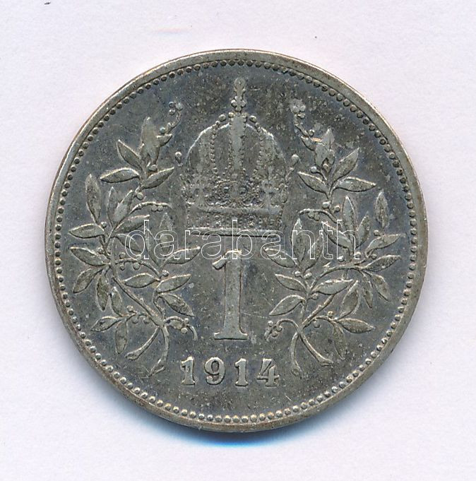 Austria 1914. 1 Corona Ag "Franz Joseph" C:VF patina