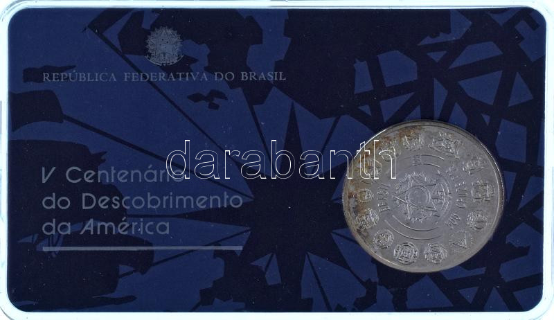 Brazília 1991. 500C Ag "Két világ találkozása" eredeti tokban, tanúsítvánnyal T:UNC fo. (eredetileg:PP)