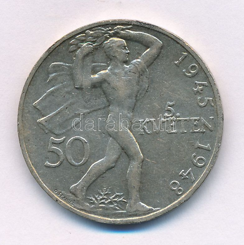 Csehszlovákia 1948. 50K Ag "Prágai felkelés harmadik évfordulója" T:AU,XF patina