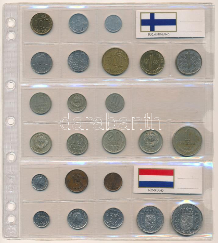 Finnország 1965-1994. 1p-1M (8xklf) + Szovjetunió / Oroszország 1961-1990. 10k-1R (8xklf) + Hollandia 1968-1980. 1c-2 1/2G (8xklf) T:vegyes