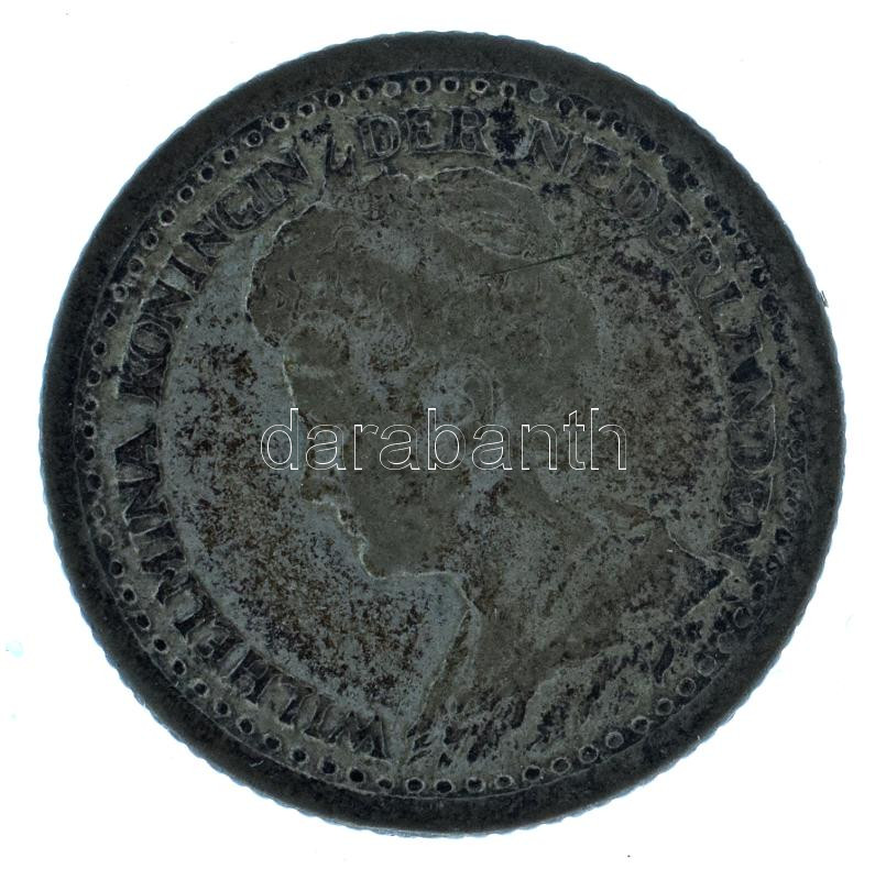 Netherlands 1918. 10 Cents Ag "Wilhelmina" C:XF patina