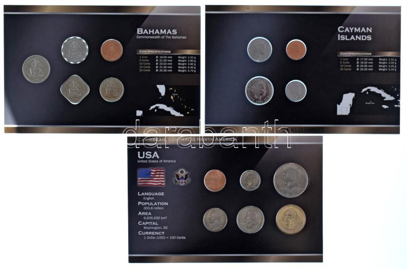 Kajmán-szigetek 2002. 1c - 25c (4xklf) forgalmi összeállítás "World Money" + Bahamák 1992-2007. 1c-25c (5xklf) forgalmi összeállítás "World Money" + Amerikai Egyesült Államok 2004-2009. 1c-1$ (6xklf) forgalmi összeállítás "World Money" T:UNC