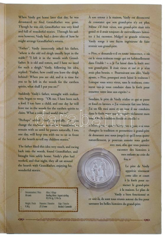 Canada 2001. 50 Cents Ag "The sled" english-french language cardboard display case C:PP