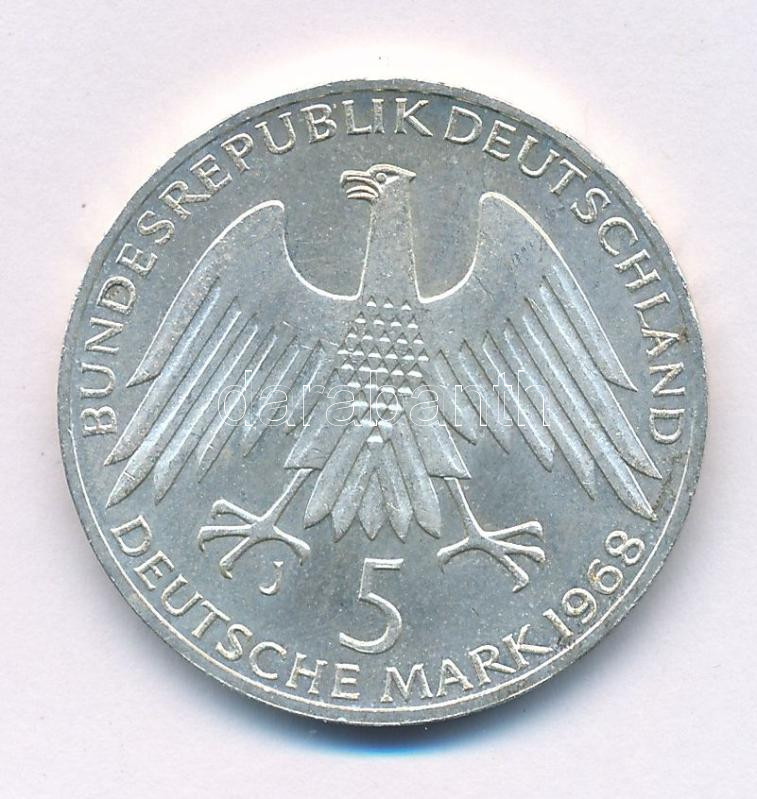 NSZK 1968J 5M Ag "Friedrich Raiffeisen születésének 150. évfordulója" T:AU