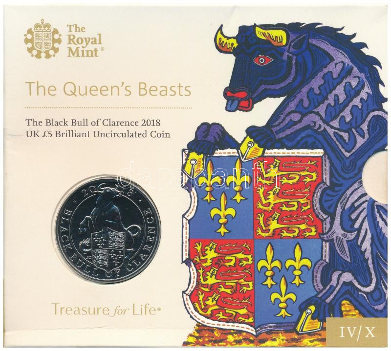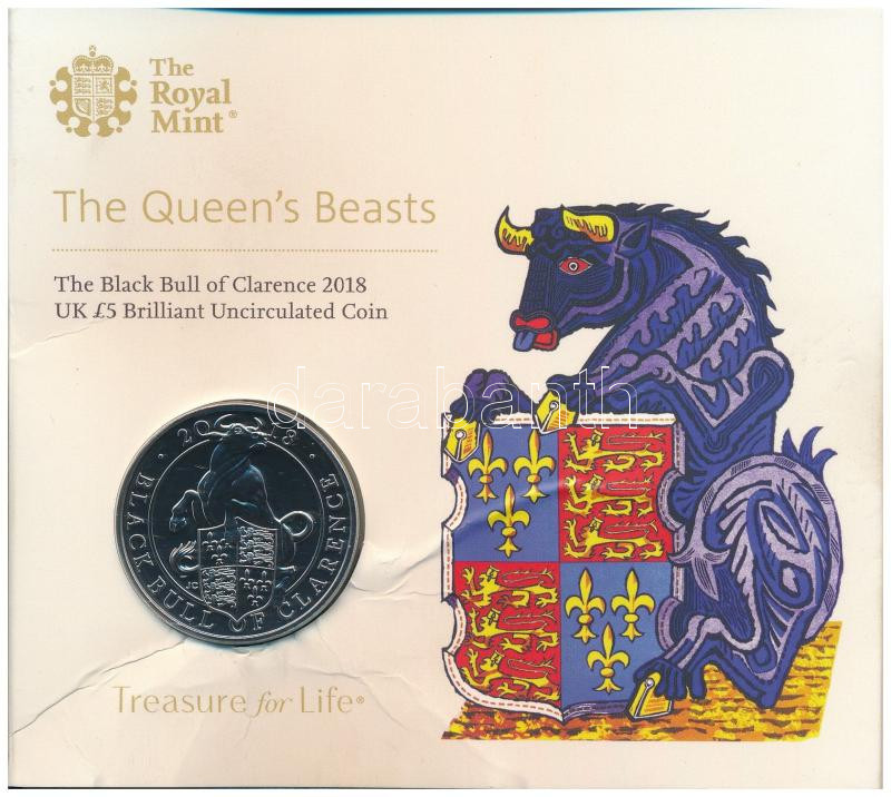 Great Britain 2018. 5 Pounds Cu-Ni "The Queen's Beasts - The Black Bull of Clarence" in original, slightly damaged display case C:BU