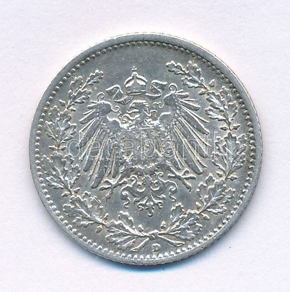 German Empire 1915D 1/2 Mark Ag C:XF,VF patina