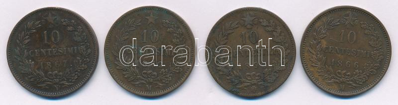 Olaszország 1862N 10c bronz "II. Viktor Emánuel" + 1866M 10c bronz "II. Viktor Emánuel" + 1867N 10c bronz "II. Viktor Emánuel" + 1893BI 10c bronz "I. Umberto" T:XF-F