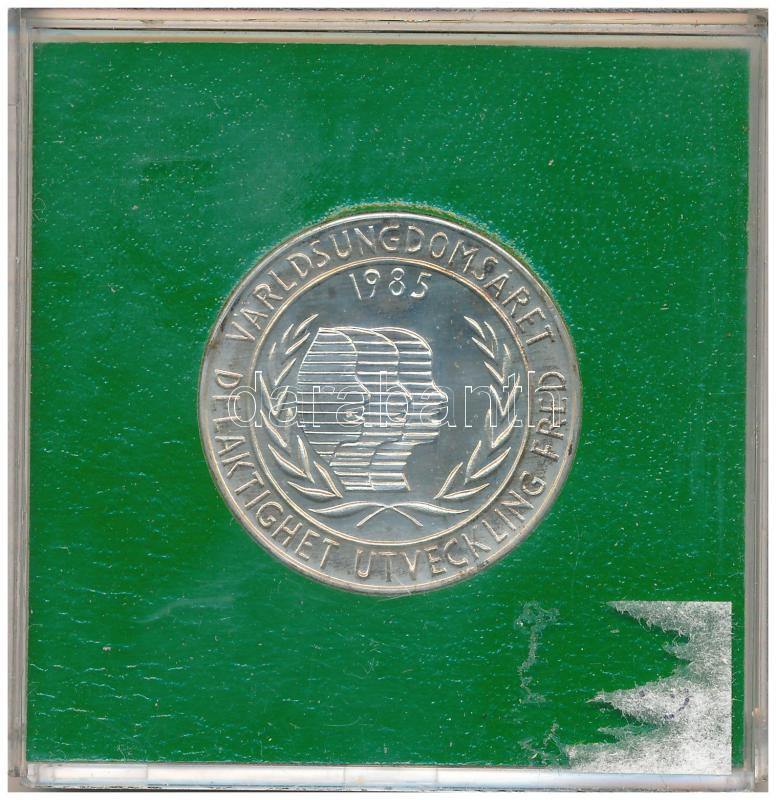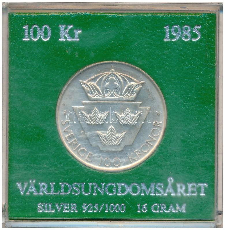 Svédország 1985. 100Kr Ag "Nemzetközi Ifjúsági Év" műanyag tokban T:UNC patina