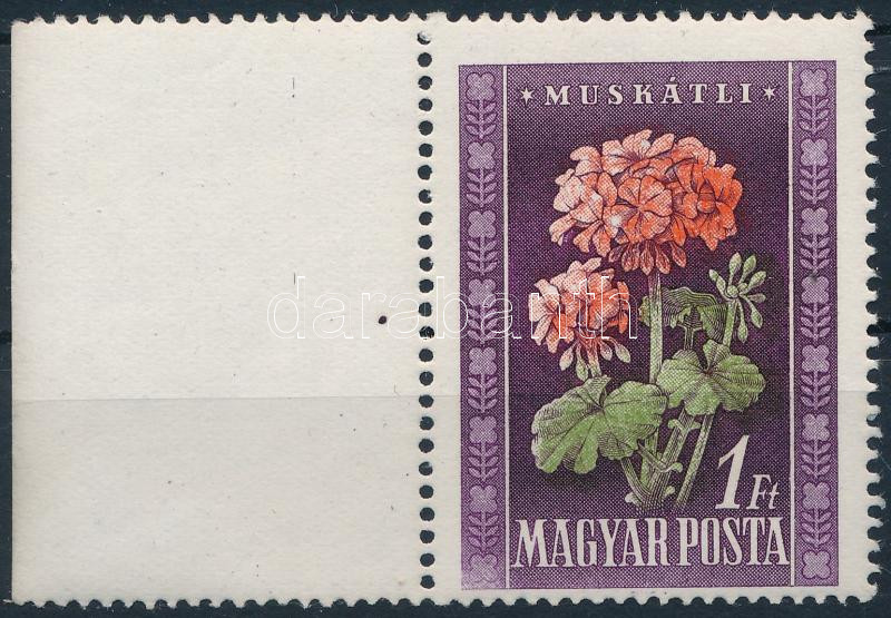 1950 Virág (I.) 1Ft ívszéli bélyeg a tervező neve alig látszik (7.000)