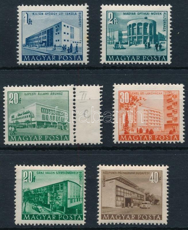 1951/1953 6 db Épületek bélyeg számvízjellel (1Ft rozsda / stain)