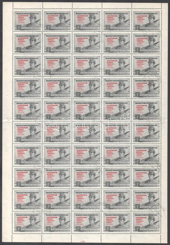 1954 Magyar Tanácsköztársaság 1Ft hajtott teljes ív, a Szolnok "K" betűje szinte teljesen hiányzik lemezhibával