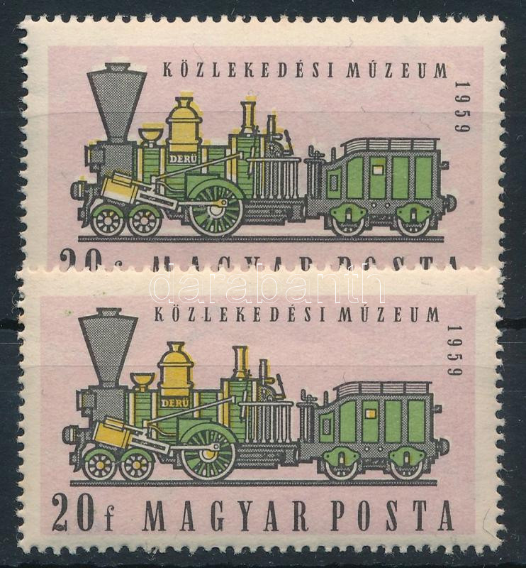 1959 Közlekedési múzeum 20f a sárga és rózsaszín felfelé tolódott + támpéldány