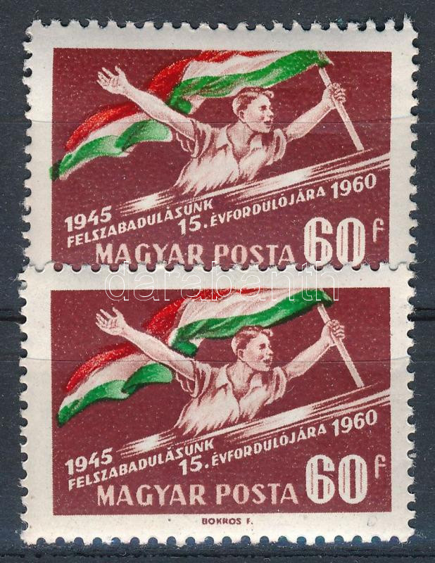 1960 Felszabadulás 60f a zöld szín balra tolódott (keret) (ráncok / creases) + támpéldány