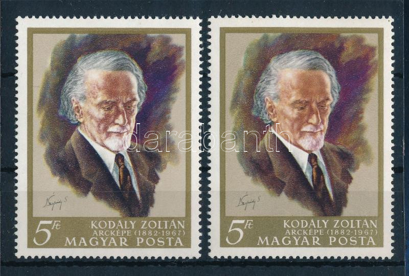 1968 Kodály Zoltán I. 2 db különböző színárnyalatú bélyeg