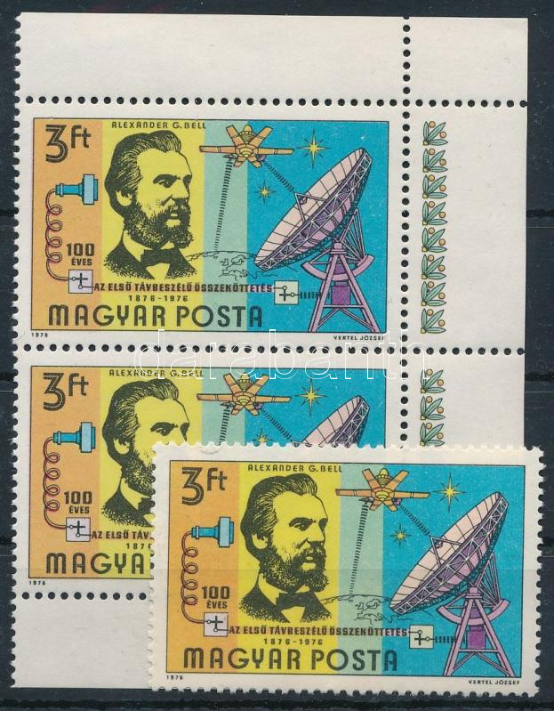 1976 100 éves az első távbeszélő összeköttetés 3Ft pár, a "a telefonzsinórból kilóg a vörös szín" + támpéldány