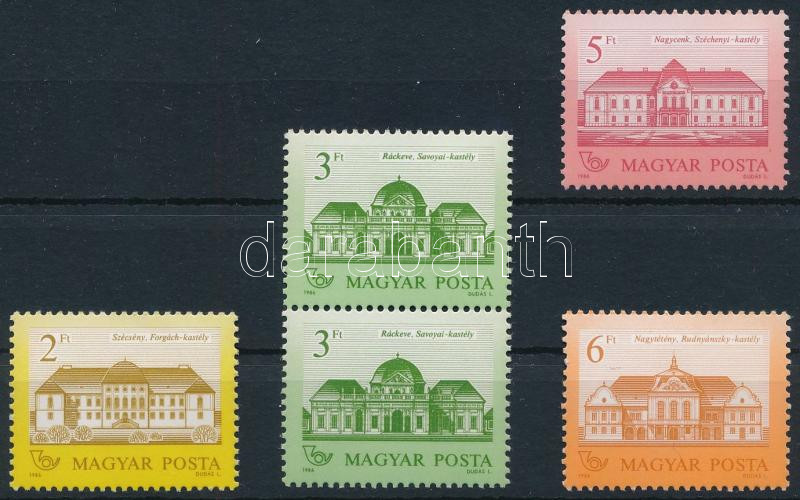 1986 Kastélyok (I.) 2Ft, 3Ft függőleges pár, 5Ft és 6Ft 12 3/4 : 12 1/4 fogazással matt-fényes papíron