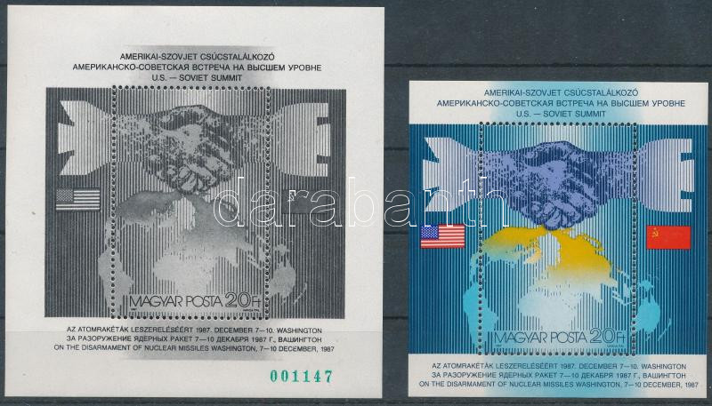 1987 Csúcstalálkozó feketenyomat blokk zöld sorszámmal + normál blokk (10.400)