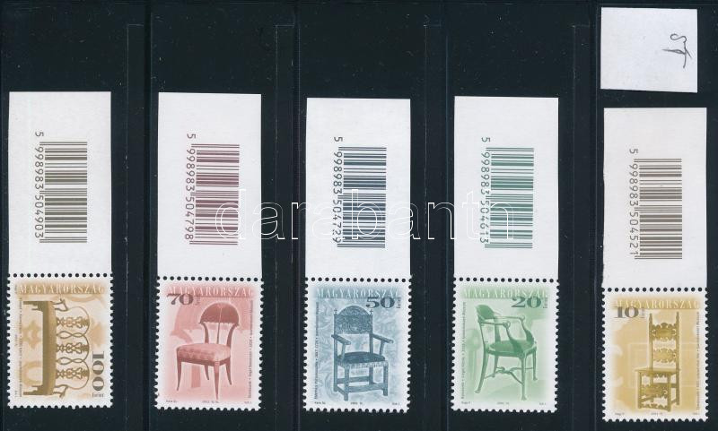 2001-2002 Antik bútorok utánnyomott vonalkódos sor sihl papíron, selyemfényű gumival
