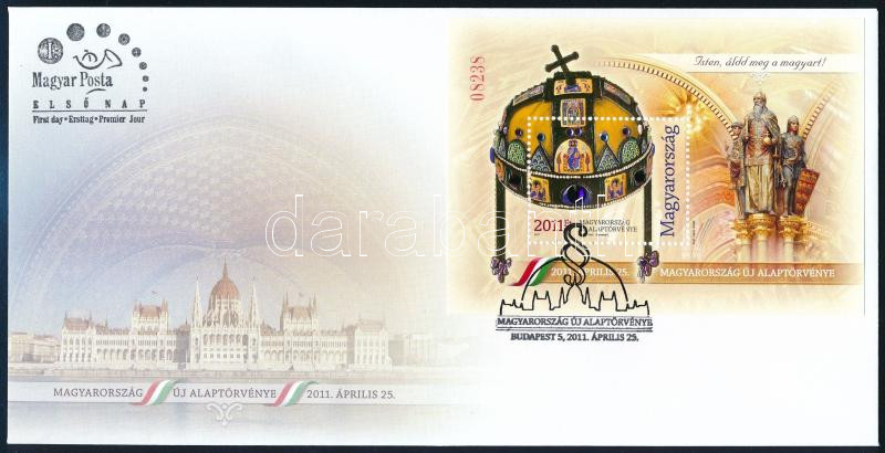2011 Magyarország új alaptörvénye blokk kristályos változat FDC-n (11.000)