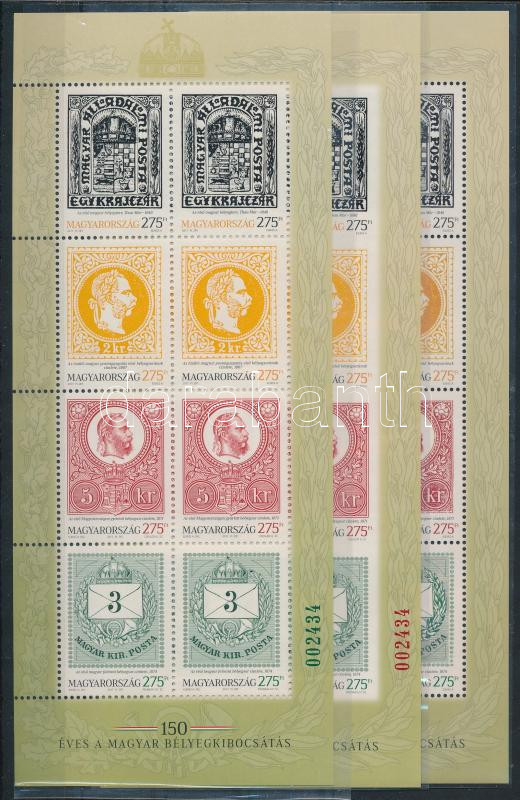 2017 150 éves a magyar bélyegkibocsájtás kisív + kisív zöld sorszámmal + vágott kisív piros sorszámmal