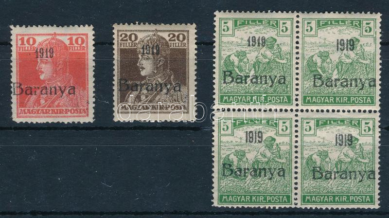 Baranya I. 1919 3 db bélyeg antikva számokkal, Bodor vizsgálójellel (min 9.600)