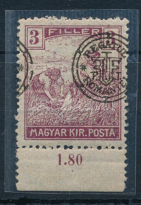 Kolozsvár 1919 Arató ívszéli 3f próbanyomat BANI szó nélkül, eltolódott felülnyomással, Certificate: Bodor