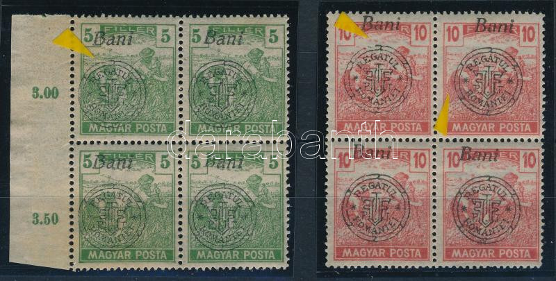 Nagyvárad 1919 2 db 4-es tömb törött kör lemezhibával, Bodor vizsgálójellel