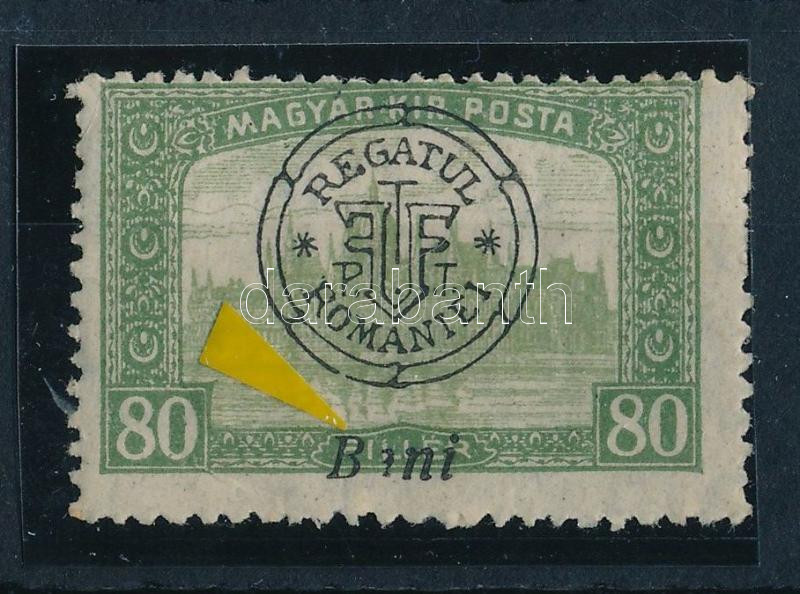 Nagyvárad 1919 Parlament 80f a Bani szóban hiányos "a" betű lemezhibával, Bodor vizsgálójellel