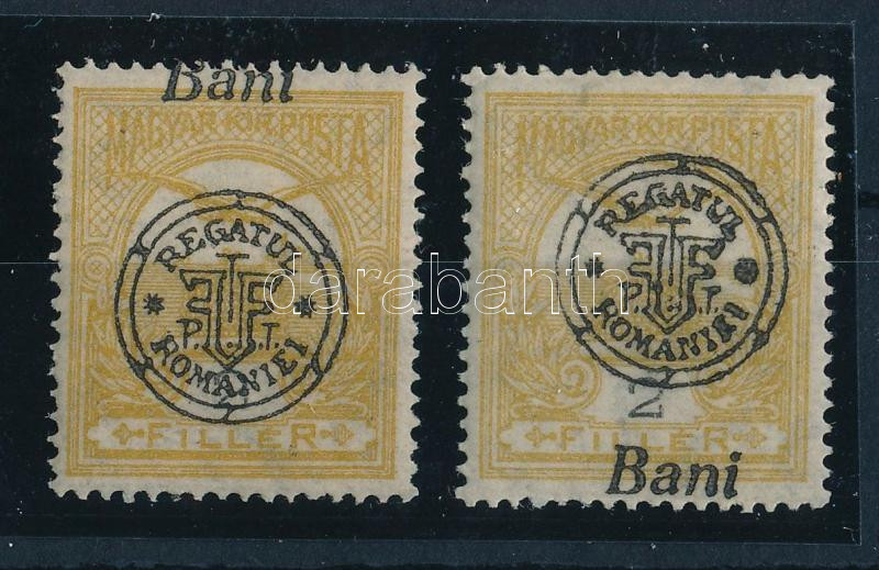 Nagyvárad 1919 Turul 2 db 2f eltolódott felülnyomással, Bodor vizsgálójellel