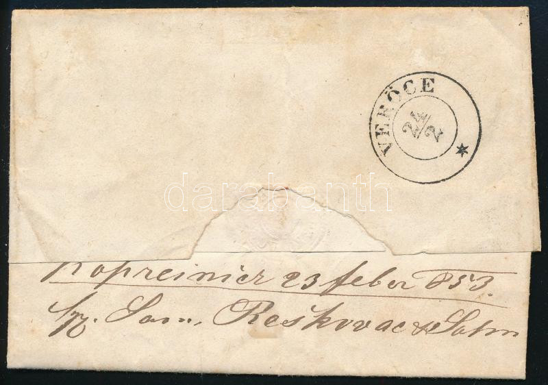 1853 3kr HP III 1. zónás távolsági levélen "KOPREINITZ" - "VERŐCE" - Theresovatz