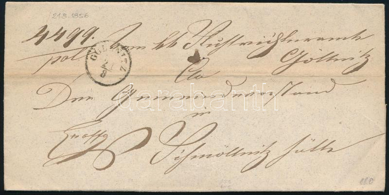 1856 Ex offo levél "GÖLLNITZ" - "SZOMOLNOK"