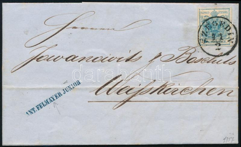 1857 9kr MP IIIb levélen teljes tartalommal "SZEGEDIN" - "TEMESVÁR" - Weisskirchen