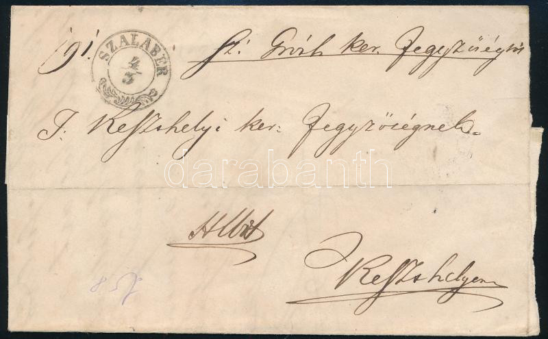 1857 Hivatalos levél / Official cover "SZALABÉR"