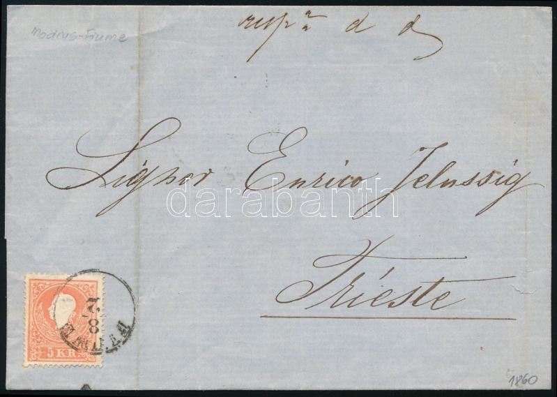 1860 5kr II. tipus centrált bélyeg levélen "FIUME" - Trieste