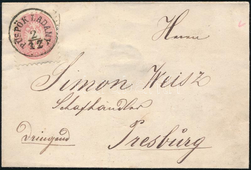 ~1865 5kr levélen "PÜSPÖKLADÁNY" - Presburg
