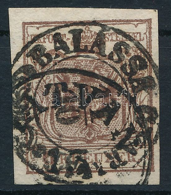 1850 6kr HP III 2 bélyegzéssel "BALASSA GYARMAT" és "HATVAN"