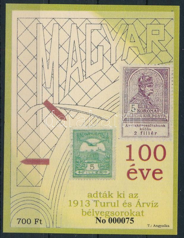 2013 100 éve adták ki az 1913 Turul és Árvíz sorokat emlékív