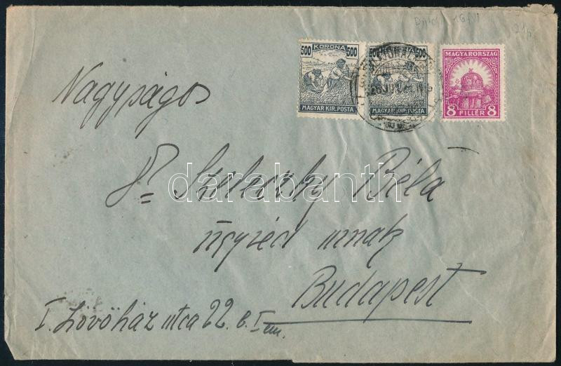 1926 Levél 2 x 500K és 8f vegyes bérmentesítéssel Balatonalmádiból Budapestre