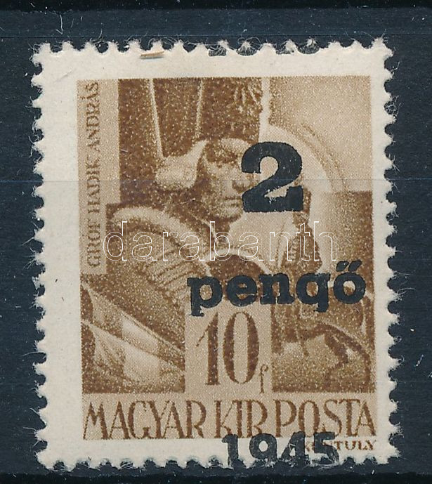 Nagyvárad I. 1945 2P/10f elcsúszott felülnyomással, Bodor vizsgálójellel