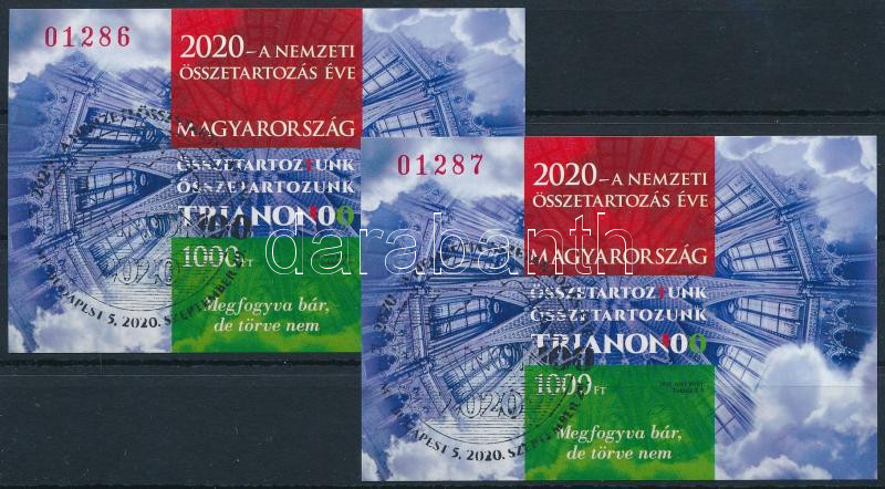 2020 A nemzeti összetartozás éve 2 db sorszámkövető vágott blokk