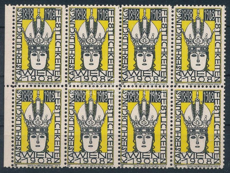 1908 Wiener Werkstätte, császárjubileum levélzáró nyolcastömb / 1908 Kaiserhuldigung poster stamp set of 8 sign. Löffler 24 x 36 mm
