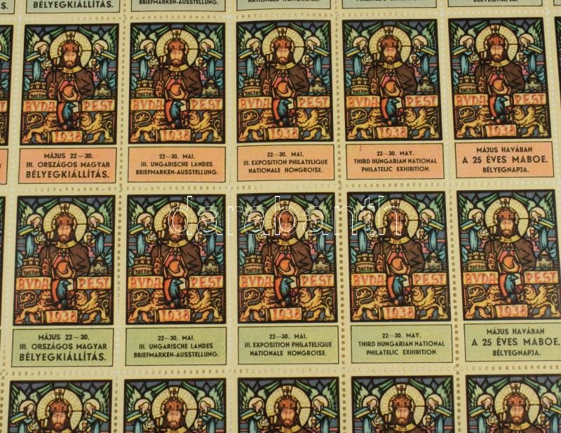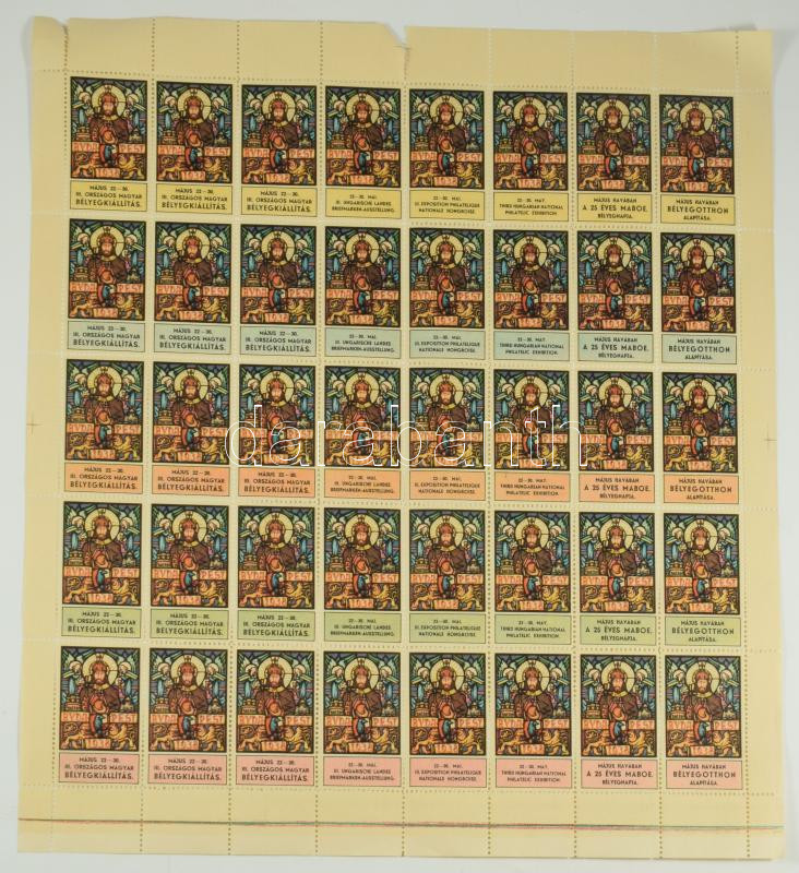 1938 Szt. István év - III. Magyar Nemzeti Bélyegkiállítás, Május havában Bélyegotthon alapítása, 25 éves a MABOE bélyegnapja levélzáró teljes ív.