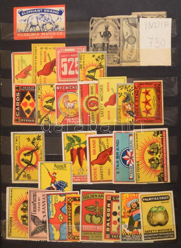 cca 730 darabos vegyes indiai levélzáró összeállítás berakóban.