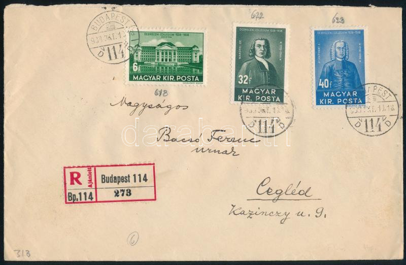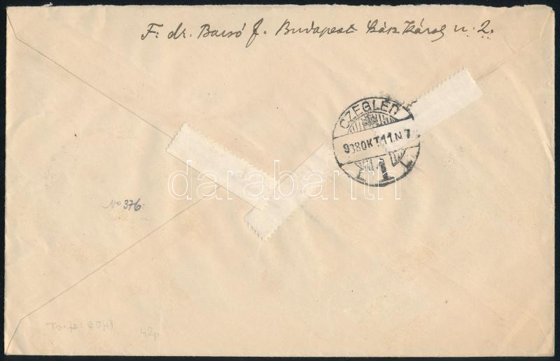 1938 Ajánlott levél 78f bérmentesítéssel Budapestről Ceglédre