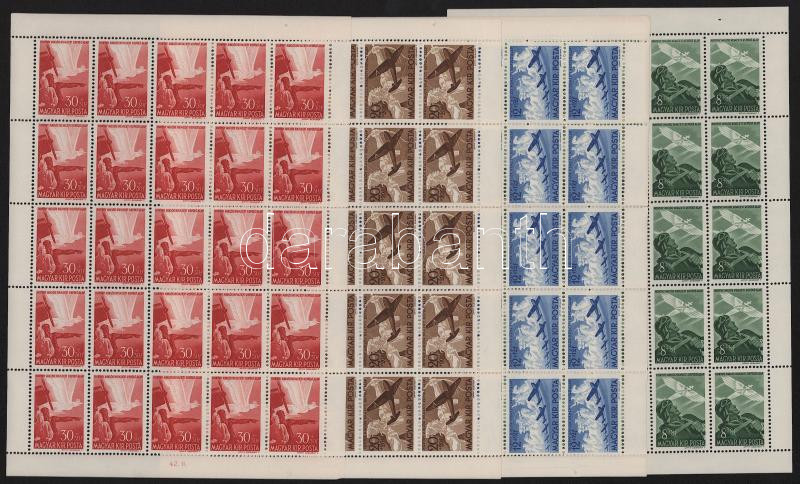 1942 Repülő alap III. ívsor, minden értéken ívszéli keletjelzés