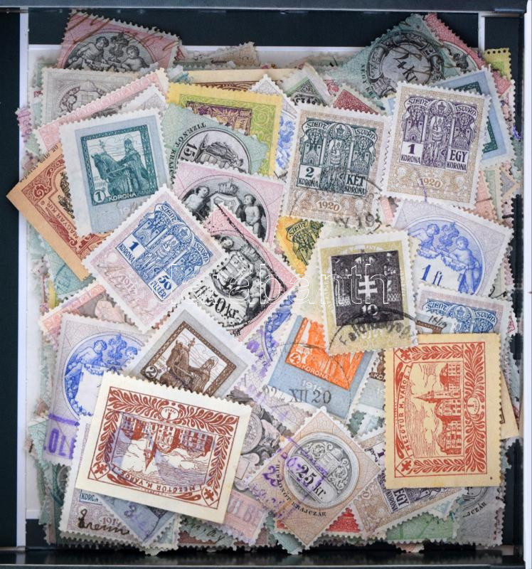 1868-1934 500 db régi magyar okmánybélyeg, bonbonos dobozban ömlesztve