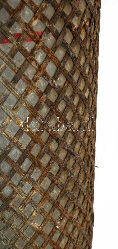 Antik vashálós szódás üveg, hálón sérüléssel, m: 33 cm